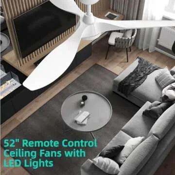 Show more Introducing the Roomratv Ceiling Fan with Lights, your ideal blend of functionality and modern aesthetics. This impressive 52-inch ceiling fan is engineered to deliver large airflow capabilities with an elegant touch, making it perfect for homes, offices, or porches. Its innovative three-blade design allows for efficient air movement—enjoy a gentle breeze on low settings or invigorating airflow during the hottest days of summer. Not only does it cool you down, but its sleek propeller design complements any room's decor, ensuring it doesn’t overpower your space.