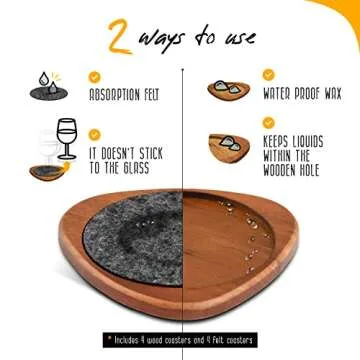 Roonin Mid Century Modern Decor Coasters - MCM Decor - Modern Coaster for Gift Ornaments Home Office - Walnut Coasters for Drink (Set of 4)