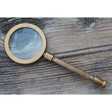 Show moreIntroducing the Roorkee Instruments Magnifying Glass – an exquisite handheld tool expertly crafted for both functionality and style. This lightweight and portable magnifier boasts a polished brass handle, giving it a beautiful antique finish that elevates its aesthetic appeal. Designed for ease of use, it features a slip-resistant grip, making it perfect for those extended viewing sessions. At just 7 inches in height and with a lens diameter of 2.75 inches, it strikes the ideal balance between size and performance, delivering a crystal-clear, distortion-free 5x magnification. Whether you're diving into a new book or examining intricate details in your personal collection, this magnifying glass is your perfect companion.