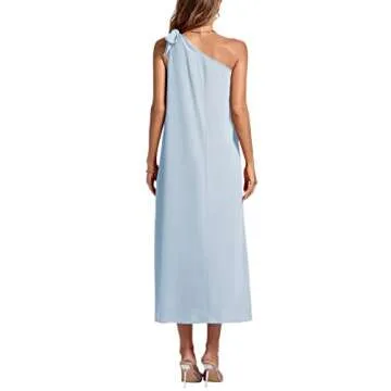 Rooscier Women's One Shoulder Bow Tie Sleeveless High Split Party Sexy Maxi Dress Light Blue Large