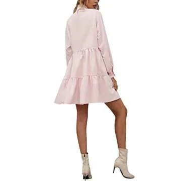 Features: Swing mini dress features with v neck, lantern long sleeve, ruffle tiered, button cuffs, loose fit, cute and charming, it can be easily dress up and dress down.