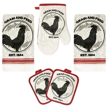 Show moreElevate your culinary space with the exquisite Rooster Kitchen Decor Linen Set, thoughtfully designed for both functionality and aesthetic appeal. This charming set includes two kitchen towels, two pot holders, and one oven mitt, all adorned with delightful grain and feed rooster motifs that bring a rustic yet stylish vibe to your kitchen. The high-quality linen fabric ensures that the towels are not only soft to the touch but also highly absorbent, making them reliable companions during cooking and baking adventures.