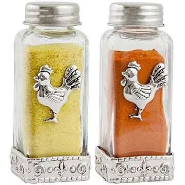 Unlike other standard shaker sets, the Rooster Salt and Pepper Shakers excel with their combination of functionality and eye-catching design. Competing products often lack the unique decorative elements and reliable construction we offer. Our premium glass and stainless steel design ensures not only a longer lifespan but also adds a character to your table that ordinary shakers simply cannot match. While many shakers feature plastic tops that can warp or warp, our screw-off stainless steel cap guarantees durability and ease of use, setting it apart from the competition.