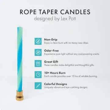 When compared to typical taper candles available in big box stores, the Rope Candles outshine the competition with their distinctive spiral design and vibrant colors that truly serve as art pieces. Many traditional candles fail to offer the same level of appeal and quality. With their USA-made manufacturing and high-grade materials, these candles embody a standard of craftsmanship often missing in generic options. They also contain no fragrance, perfect for those who appreciate subtle ambiance without overwhelming scents.
