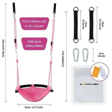 Show more Introducing the perfect blend of comfort and safety for your little ones—the incredible toddler swing seat! Crafted with durable polyester climbing rope, this swing is designed to withstand the rigors of play while remaining easy to clean. The hand-knitted design not only enhances durability but also provides superior comfort, ensuring that your child enjoys every swinging moment. Forget about flimsy swings; this one features an ergonomic, U-shaped cradle that not only protects your child's spine but also offers a cozy seating experience. Parents can breathe easy knowing that this swing effectively prevents children from tipping over during use.