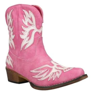 ROPER Womens Amelia Tooled Inlay Snip Toe Casual Boots Ankle Low Heel 1-2" - Pink