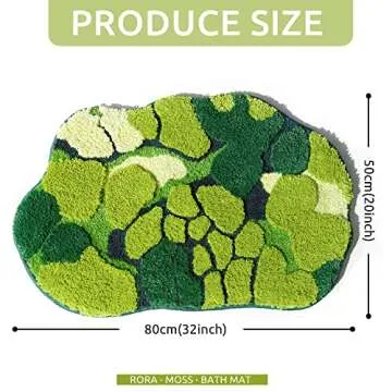 RORA Green Moss Bathroom Rugs Cute Leaf Bath Mat for Bathroom Non Slip Soft Microfiber Water Absorbent Aesthetic Green Bathroom Decor Boho Plush Rug for Shower, 32×20 Inch