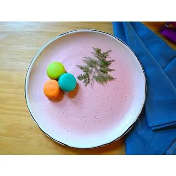 Show moreIntroduce a touch of artisanal elegance to your dining experience with the roro Ceramic Stoneware Free-Form Hand-Thrown Dinner Plate Set. This stunning set of two 11-inch dinner plates is expertly hand-thrown from high-quality kaolin clay, embodying the perfect mix of durability and timeless beauty. Each plate features a captivating pink speckled watermelon design, ensuring that no two pieces are alike - a true hallmark of unique craftsmanship. Their generous diameter makes them ideal for presenting all types of dishes, from everyday meals to exquisite feasts.