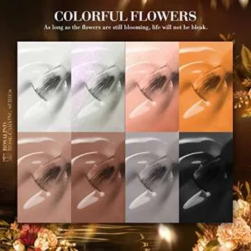 ROSALIND 8PCS White Black Nude Gel Nail Polish Set Fall Neutral Nail Gel Collection Polish, Nude Orange Brown Gel Nail Polish Manicure DIY Home