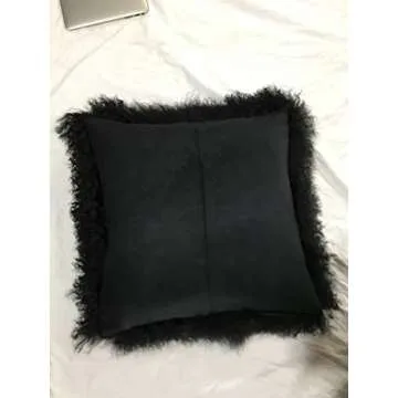 ROSE FEATHER Real 100% Tibetan Mongolian Lamb Sheepskin Wool Fur Super Soft Plush Leather Pillowcase Cushion Cover,Black 24x24inch
