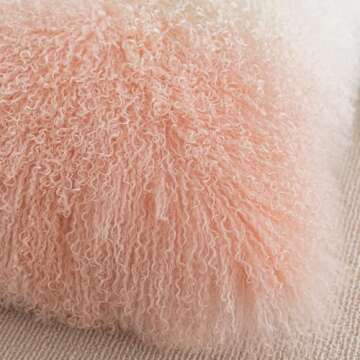 Show more Transform your living space with our luxurious Pillow Cover, expertly crafted from real Mongolian lamb wool for an exceptionally fabulous feel. Designed in an eye-catching gradient pink, this pillow cover measures a generous 20x20 inches, making it the perfect addition to a variety of settings, from your cozy sofa to your favorite armchair. The backing is made of faux suede, complemented by a hidden zipper closure, ensuring easy care and maintenance. Whether you're looking to add style and comfort to your home or seeking a thoughtful gift, this pillow cover is an ideal choice.