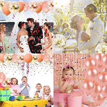 Rose Gold Balloons Party Decorations Supplies Set 35 Pack Include 30 Balloons, 2 Foil Fringe Curtains, 1 Rose Gold Sequin Table Runner, 2 Foil Ribbon for Birthday Party, Wedding,Xmas New Year Festival