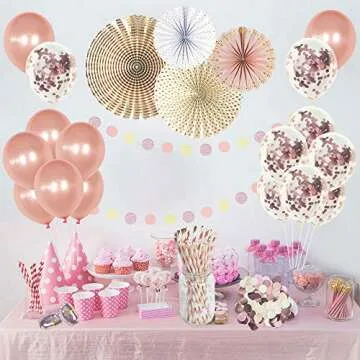 Elevate your special occasion with our Rose Gold Birthday Party Decorations Supplies Set, a stunning collection of 50 pieces designed to make your celebrations unforgettable. This set includes elegant confetti balloons, each measuring 12 inches, crafted to create a vibrant and festive atmosphere. Perfectly suited for various events such as birthdays, bridal showers, weddings, engagements, graduations, and more, these decorations will effortlessly transform any venue into a glamorous wonderland....