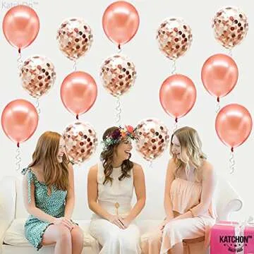 Show moreEmbrace the elegance of your celebrations with our Rose Gold Confetti Balloons Decorations! This delightful pack of 30 includes a stellar combination of 12-inch latex balloons expertly designed to elevate any event, particularly your milestone birthdays like the 30th, 40th, 50th, and even 60th! The stunning rose gold hue coupled with shimmering confetti elements will add a luxurious touch that makes every party picture-perfect. Utilize these balloons to create memorable backdrops or as essential party supplies that guests won't forget.