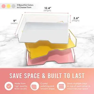 Rose Gold Mirror 2 Pack - Acrylic Stackable Mirror Letter Tray, Clear Paper Organizer for Office, Vanity - Desk Workspace Organizers and Accessories, File Holder, Stacking Desktop Organization