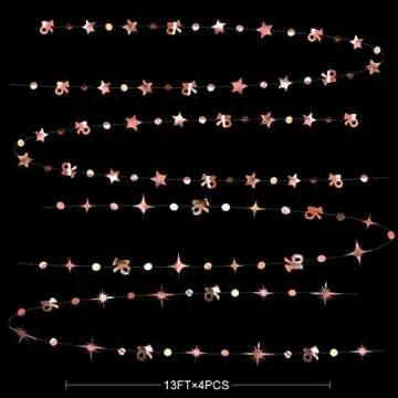Show moreTransform your special celebrations into dazzling events with our Rose Gold Number 16 Circle Dot Twinkle Star Garland Kit from Sweet 16 Decor Co.! This stunning garland kit is designed specifically for unforgettable moments, featuring four strings each measuring 11.5 feet (3.5 meters) long. That’s a whopping total of 46 feet (14 meters) of enchanting decorations that perfectly capture the beauty of rose gold.