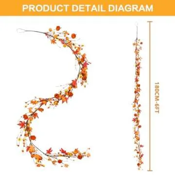 RoseCraft Fall Garland Decor, 6Ft Artificial Berries Pumpkin Maple Leaf Autumn Garland Decorations, for Home Fireplace Door Frame Doorway Porch Backdrop Indoor/Outdoor Party Weeding Holiday Decor.