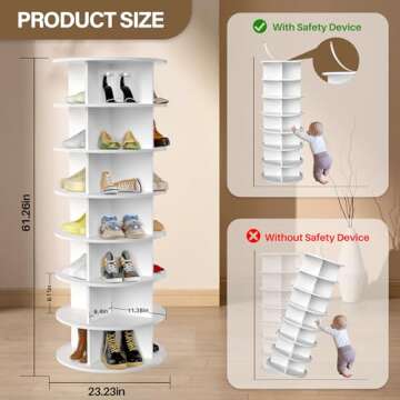 With dimensions specifically designed to fit compact spaces, the height of 61.26 inches and a diameter of 23.23 inches allow it to seamlessly integrate into various areas of your home. Each tier offers ample height at 8.11 inches, perfect for accommodating even the tallest of shoe styles. Ensure you check the dimensions to find the right fit for your environment!