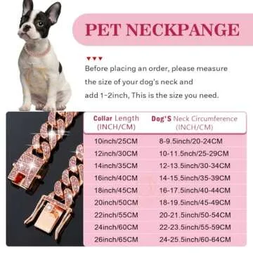 The collar is available in a variety of captivating colors – Gold, Silver, and Rose Gold – ensuring you find the perfect match for your pet's personality. Choose from **chain widths of 13mm** and lengths ranging from **10 to 22 inches** to ensure a snug yet comfortable fit for your dog. Remember, this Cuban-style chain collar is non-adjustable, so make sure to measure your dog's neck carefully and allow an extra 1-2 inches for comfort.