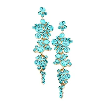 Show moreStep into the spotlight with the Rosemarie Collections Women's Stunning Crystal Rhinestone Statement Bubble Dangle Earrings. These exquisite earrings are the perfect combination of elegance and modern flair, designed to make any outfit truly memorable. Measuring 3.25 inches in length and 0.87 inch in width, the earrings feature a cascade of round-shaped rondelle cut glass crystals, beautifully arranged in a tiered cluster design. Their light aqua blue hue paired with gold tones invites a touch of sophistication, making them an ideal accessory for any special occasion, from weddings to proms. Not only do they sparkle brilliantly in the light, but they also add a chic, glamorous touch to your overall look.