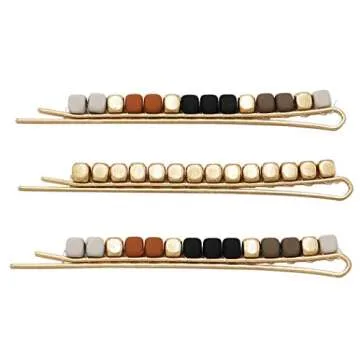 Rosemarie & Jubalee Women's Set of 3 Beaded Hair Clip Bobby Pins Hair Barrette Accessories (Black/Tan/Grey)