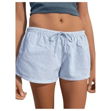 Show moreStep into summer comfort with the RoseSeek Women's Striped Print Drawstring Elastic Waist Shorts! These casual wide-leg summer boxer shorts, available in a stunning blue and white striped print, are thoughtfully crafted from a breathable, non-stretchy material that is as soft as it is skin-friendly. Perfect for those hot summer days, these shorts are designed to keep you cool and stylish without compromising on comfort. Whether you’re lounging at home, hitting the beach, or heading out for a casual outing, the tie front and drawstring waist add a trendy touch while ensuring a perfect fit. Plus, the lightweight fabric makes them ideal for packing on vacations or spontaneous travel plans.