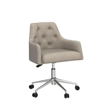 Show moreIntroducing the Rosevera Hardy Home Office Chair, the ultimate fusion of modern elegance and ergonomic design. This meticulously crafted office chair not only elevates your workspace aesthetically with its sleek linen gray fabric and button tufting but also prioritizes comfort, ensuring that your long working hours feel less strenuous. Its unique C-shaped back support follows the natural curvature of your spine, providing outstanding lumbar support that sets it apart from ordinary office chairs. No longer do you have to sacrifice style for comfort; the Hardy Chair seamlessly blends both, making it an ideal addition to any office environment.
