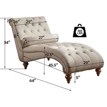 Rosevera Sereno Polyester Upholstered Button Tufting with Toss Pillow Chaise Lounge Chair for Indoor Bedroom, Standard, Linen Sand