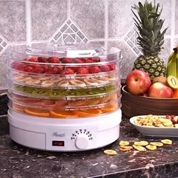 Rosewill Food Fruit Dehydrator Machine, Portable Electric Adjustable Thermostat, BPA Free, 5 Tray, Clear and white