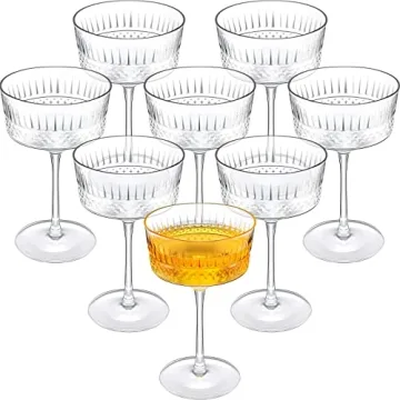 These coupe glasses are fabricated from durable glass, ensuring longevity and reusability. Their elegant ribbed design and harmonious stem-to-base ratio not only enhance their visual appeal but also provide a comfortable grip, making it easy to celebrate any occasion with style. The generous 8-piece set ensures you're prepared for gatherings of all sizes, from intimate dinners to large celebratory events.