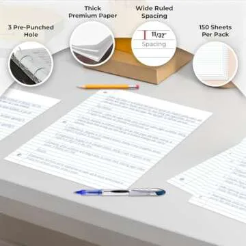 Rosmonde Loose Leaf Paper, 450 Sheets, 3 Pack, 56 gsm Wide Ruled Sheets, 8" x 10.5", Bulk Notebook Paper, 3 Hole Punched, 150 Sheets/Pack, Wide Ruled Paper for Binders, Loose Leaf Office Paper, White