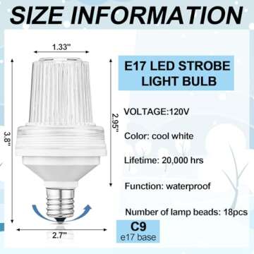 Rossesay 4 Pcs 120v Strobe C9 Christmas Lights Bulbs Outdoor Waterproof C9 LED Replacement Bulbs E17 Base 6000k Bright Flashing Strobe Light for Indoor Outdoor Yard Xmas Tree Decor(White)