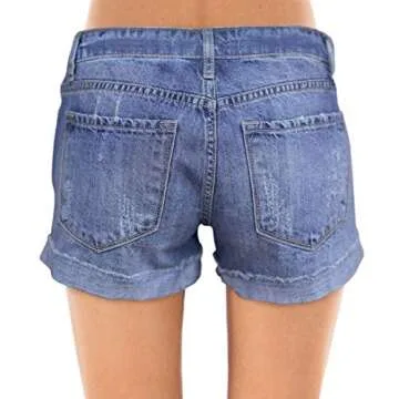 roswear Women's Ripped Mid Rise Stretchy Denim Shorts for Chic Summer Style