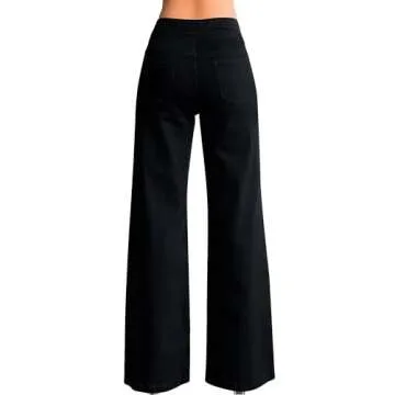 roswear Women’s Wide Leg Jeans Casual High Waisted Stretch Baggy Loose Denim Pants Black Medium