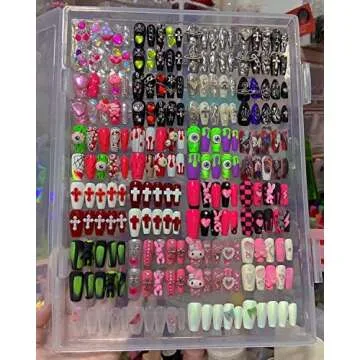 Rosy Finch Press on Nail Organizer, Acrylic Press on Nails Display Storage Box Container Holder with 38'' Transparent Tape for Nail Reused (Not Inlcude Press on Nail)