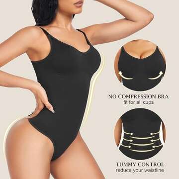 Rosytri Shapewear Bodysuit for Women Tummy Control Seamless Thong Body Shaper - Black S