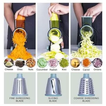 Mannilayco Rotary Cheese Grater - 3 Blade Handheld Kitchen Tool with Suction Base