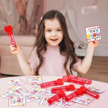 Rotatingpals 24 Set Valentines Day Gifts for Kids, Include 24 Pcs 7.9 x 0.4” Red Heart Bubble Wands with Bubbles Solution, 24 Animal Valentine Cards Party Favors for Classroom Exchange Gifts Prizes