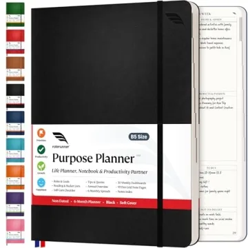Elevate your organizational game with the Roterunner Purpose Planner Notebook, an innovative B5-sized productivity tool, designed for everyone from busy professionals to students seeking a streamlined approach to managing their time and goals. With its unique structure, this undated planner allows you to customize your planning process without feeling pressured by dates. Its vertical weekly timelines accommodate all your task management needs, while offering...