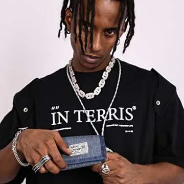 Rough Enough Kids Wallet for Boys Teen Men with Neck Lanyard Keychain in Cool Classic Denim Blue Canvas
