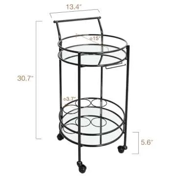Show more Introducing the exquisite round bar cart that blends functionality with stunning design! This product has been crafted to impress, featuring an elegant black color complemented by a stylish round stand that exudes sophistication. Its smooth mirror shelf not only enhances the aesthetics but also creates a sense of space and layering in any room. Whether you are entertaining guests or simply enjoying a quiet evening at home, this bar cart elevates your decor style to new heights.