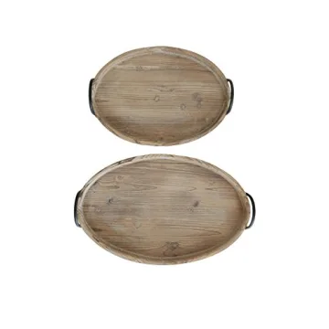 Show moreIntroducing the exquisite set of Round Decorative Wood Trays with Metal Handles, a perfect addition to your home decor that blends rustic elegance with functional design. Crafted from quality wood and finished in a beautiful weathered natural look, these trays effortlessly enhance any interior space by adding a touch of charm. The set comes with two trays in varying sizes, small (17 L x 11.7 W x 3.5 H inches) and large (21 L x 13.5 W x 3.5 H inches), making them versatile for your hosting needs, from serving appetizers to displaying cherished decor items.
