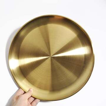 Round Gold Decorative Tray Serving Platter Metal Display Tray 10.23 inches Nice Living Room Quality Shiny Holder Kitchen Table Coaster Counter Simple Attractive Tray Brass