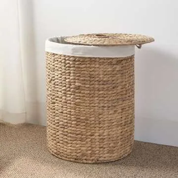 When compared to other hampers on the market, the Round Woven Wicker Laundry Hamper stands out with its eco-friendly materials, superior durability, and attractive design. Many competitor hampers compromise on visual appeal for functionality; however, this product delivers both effortlessly. The unique water hyacinth material not only looks beautiful but also provides a more rigid and lasting structure than many standard fabric or plastic hampers.