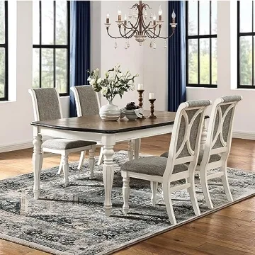 Spacious yet charming, the table measures a generous 74 inches long, 42 inches wide, and 30 inches high, while the carefully designed chairs measure 18.75 inches wide, providing ample seating space without compromising comfort. Assembly is a breeze, with all necessary instructions and parts included, making it easy for anyone to enhance their dining space effortlessly.
