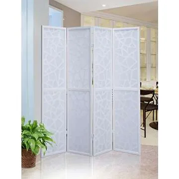 Show moreIntroducing the stunning 4-Panel Room Divider, an exquisite piece designed to not just separate spaces but enhance your living environment. Crafted from high-quality pine wood and featuring an MDF construction, this room divider boasts a sleek white finish frame that adds a touch of elegance to any room. Each panel, measuring 70'' H x 17.3'' W and constructed intricately, is enhanced with mosaic cuts that allow light to filter through while providing the privacy you desire.