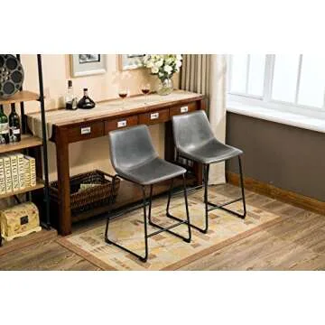 Roundhill Furniture Lotusville Vintage PU Leather Counter Height Stools, Antique Gray, Set of 2