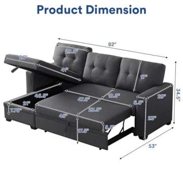 Rovibek 4-in-1 Convertible L Shaped Couch with Pull Out Bed and Storage