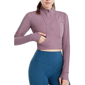 Show moreIntroducing the ROWAI Women's Long Sleeve Tops Half Zip Pullover Sweatshirts, designed specifically for those who want a blend of style and functionality in their athletic wear. Crafted from high-quality materials, this pullover not only serves its purpose during workout sessions but also transitions effortlessly into daily wear. The half zip closure allows for convenient wear while the thumbholes provide added comfort and a secure fit around the wrists. Ideal for a variety of activities like running, yoga, and gym fitness, this pullover is the perfect companion for any athletic endeavor.