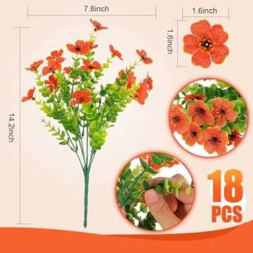 Rowfad 18 Pcs Artificial Mums Fall Flowers Outdoor Plastic Fall Flowers Fake Mums Plant Outside Autumn Flowers Greenery for Porch Window Box Home Decor (18, Green and Orange)